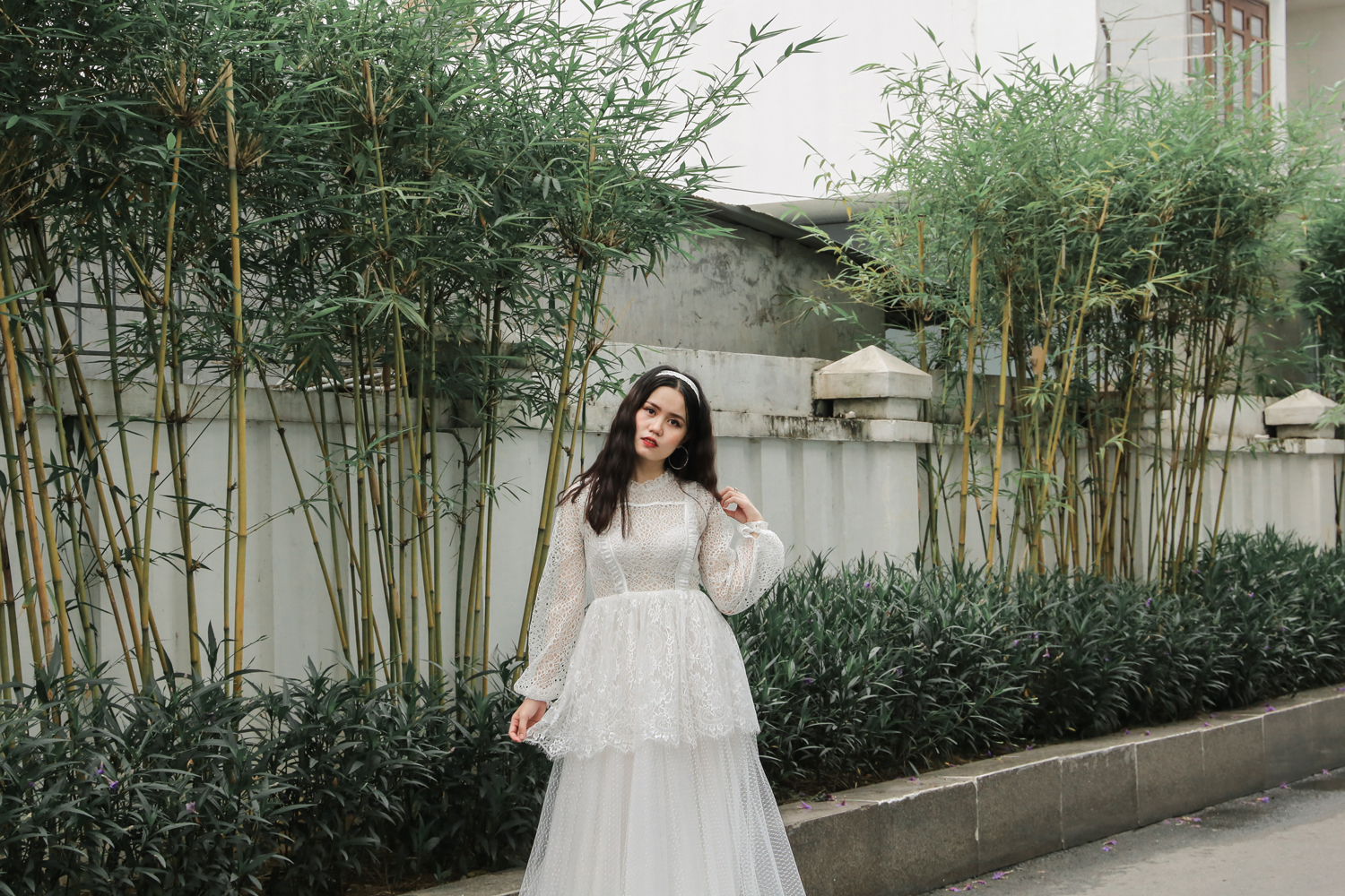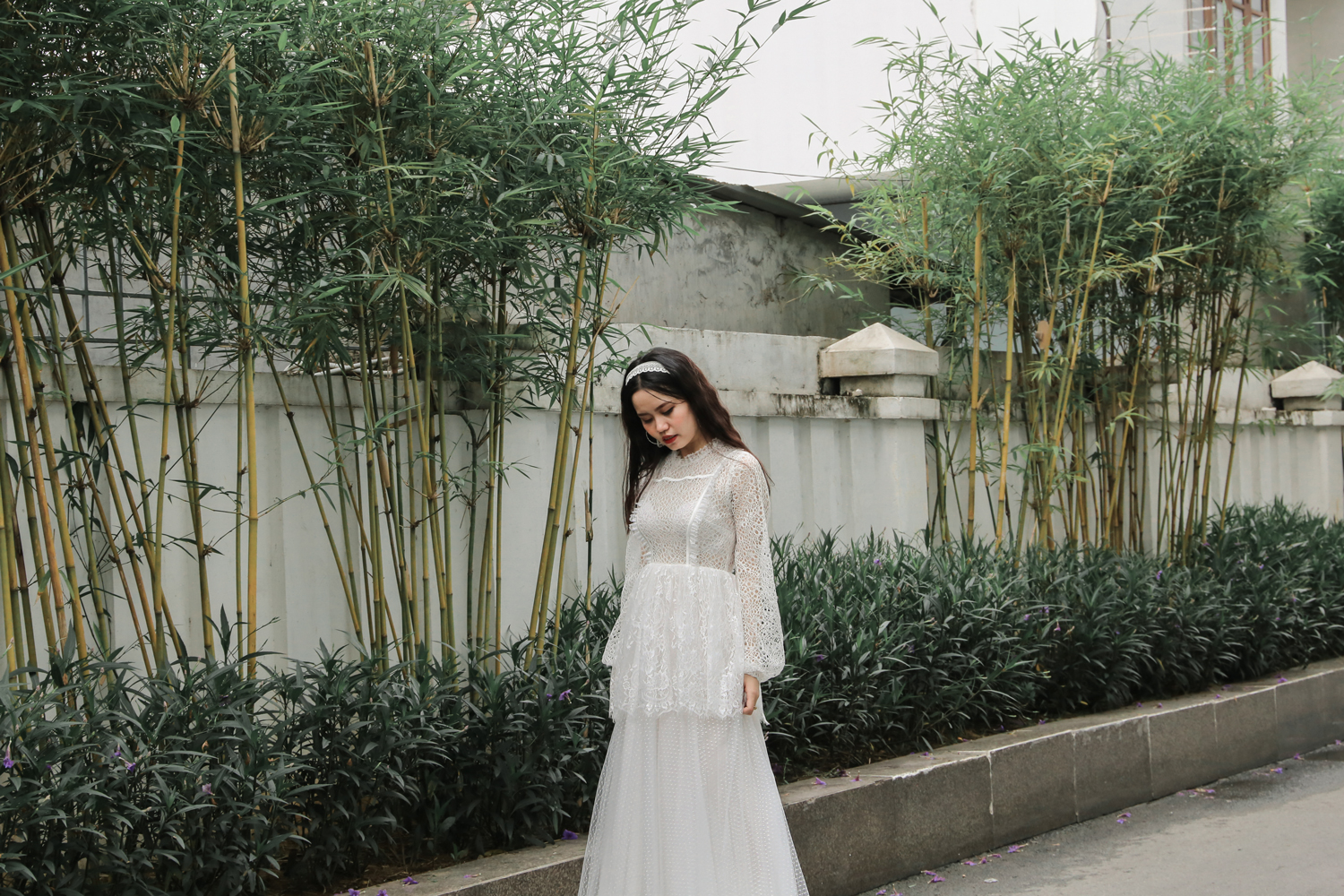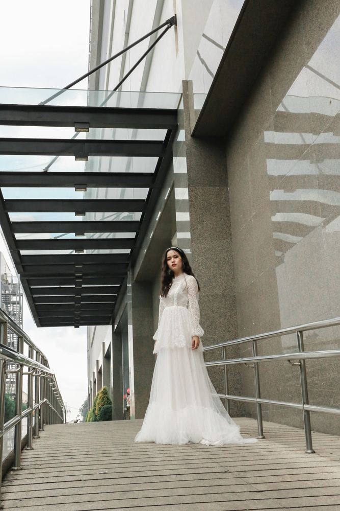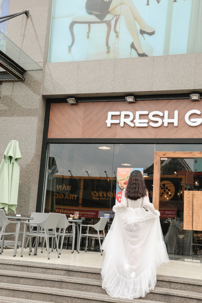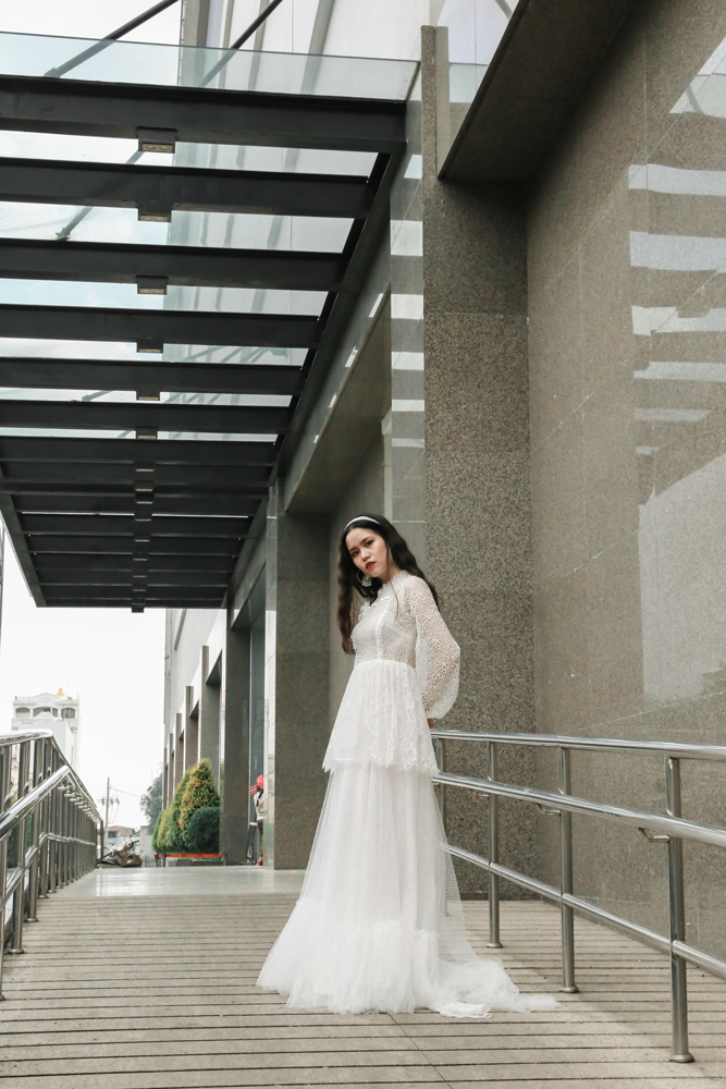 Kết hợp nhiều loại ren trắng với nhau, không những không khiến chúng đối chọi nhau mà còn hài hòa và ưng mắt, váy cưới Công chúa nhỏ thích hợp với những cô nàng yêu thích sự đáng yêu.