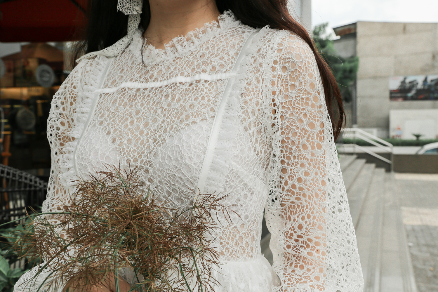 Kết hợp nhiều loại ren trắng với nhau, không những không khiến chúng đối chọi nhau mà còn hài hòa và ưng mắt, váy cưới Công chúa nhỏ thích hợp với những cô nàng yêu thích sự đáng yêu.