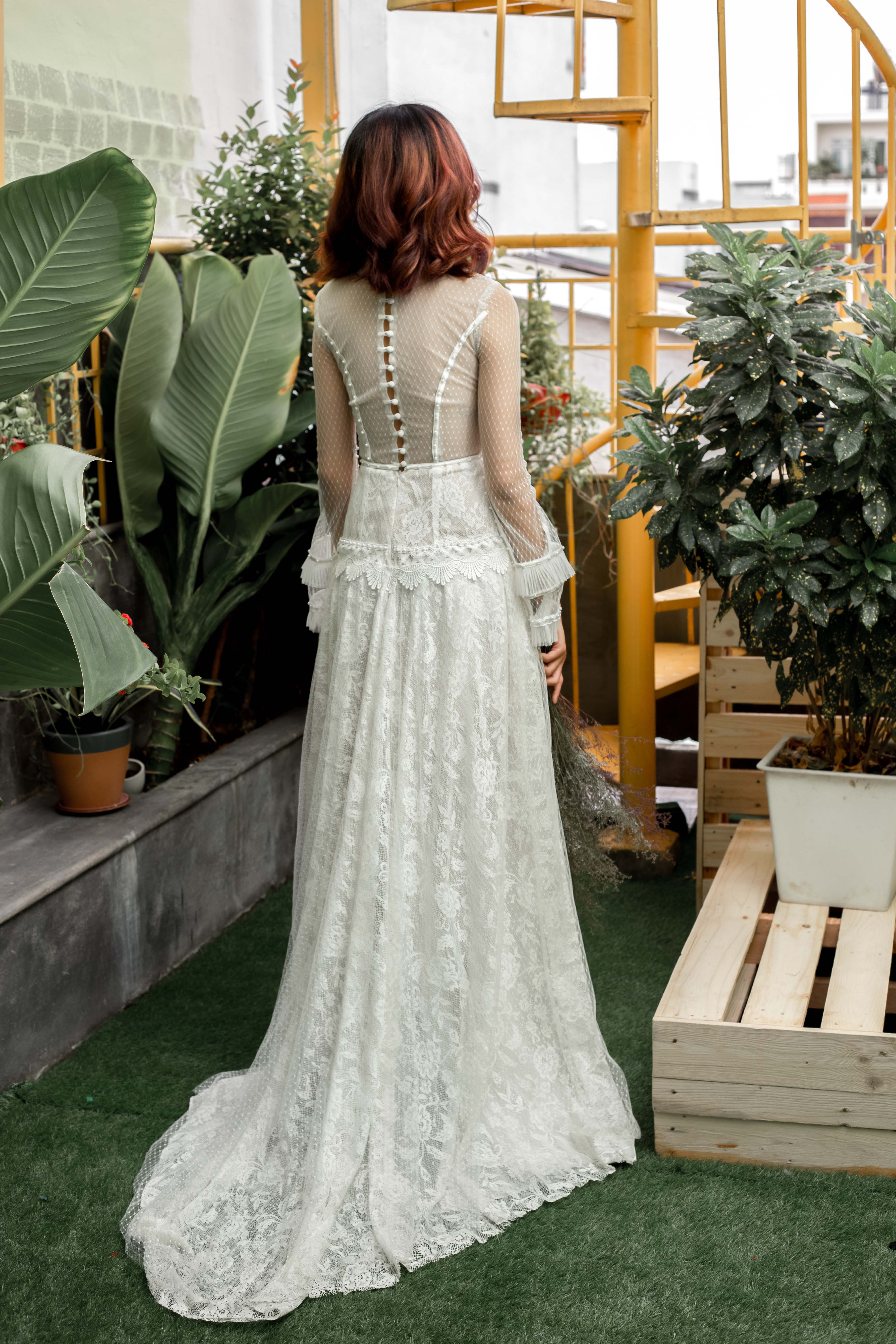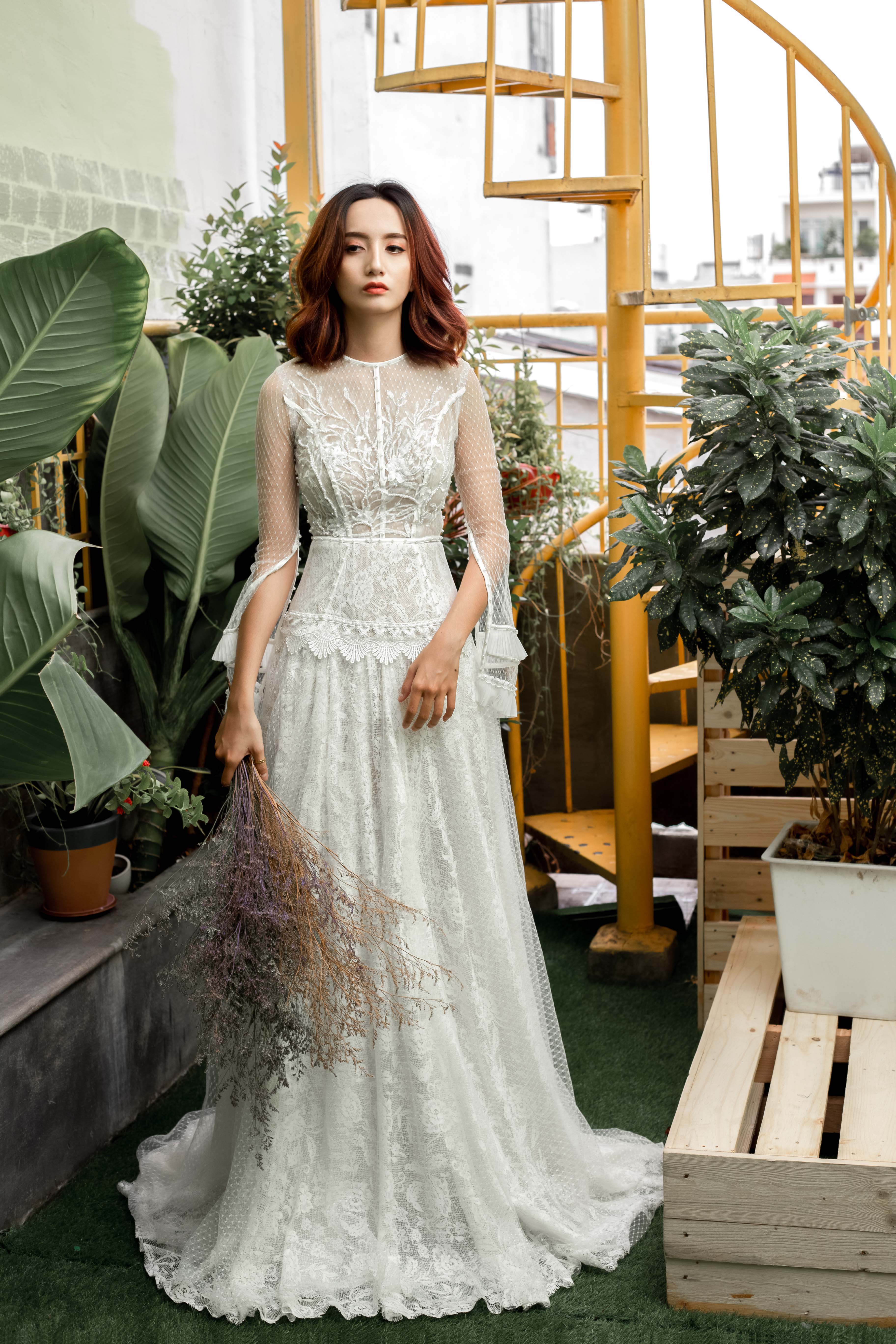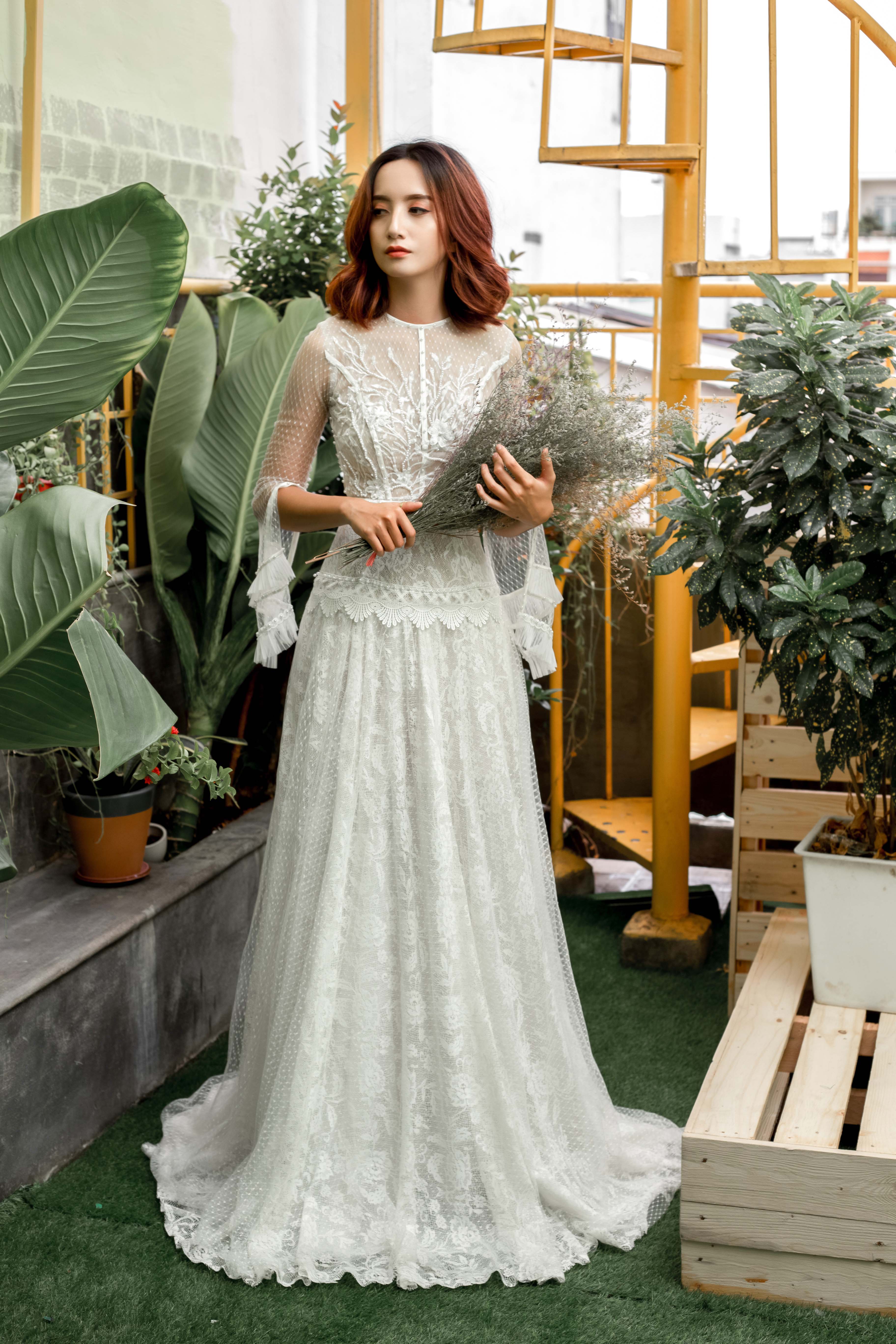 [Oanh Design] Váy cưới tiểu thư – Elizabeth do chính tay NTK Kim Oanh sáng tạo. Váy cưới đơn giản được cách điệu theo phong cách tiểu thư Pháp, với các phần ren ốp tinh tế ở tay và chân váy thanh lịch. Các chi tiết váy vừa đủ, không cầu kỳ nhưng vô cùng bắt mắt.