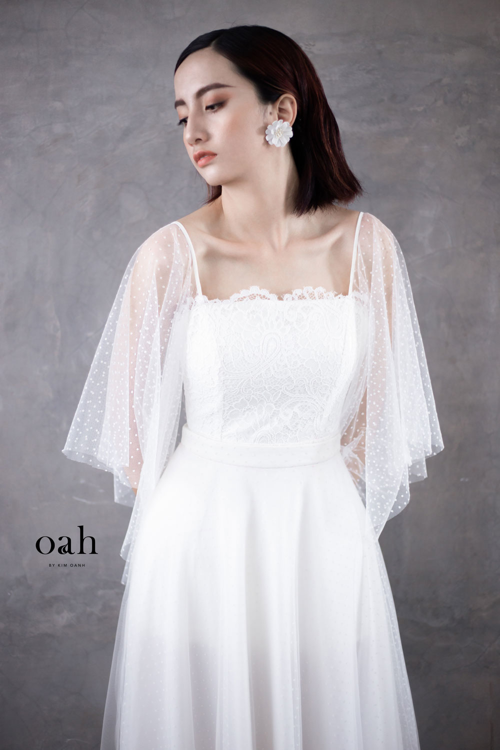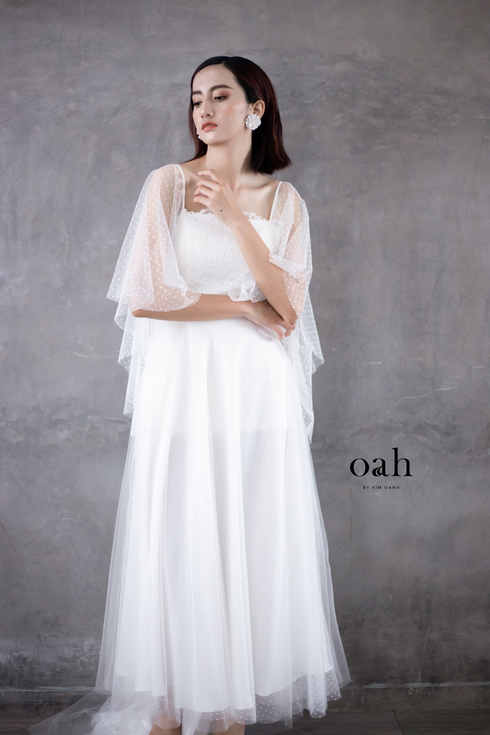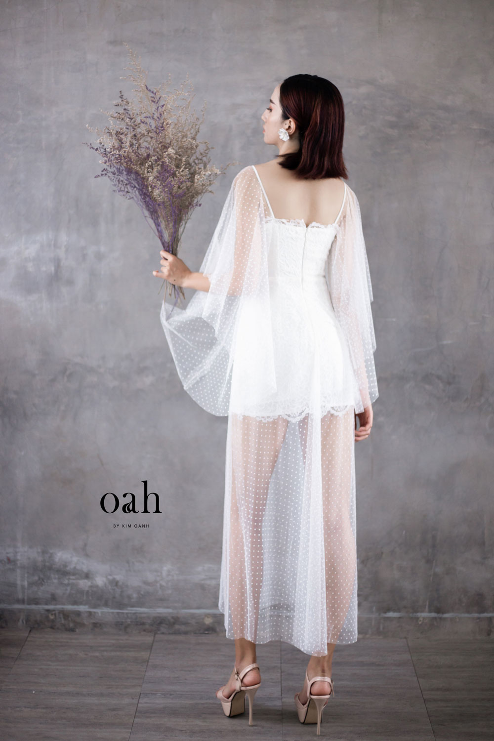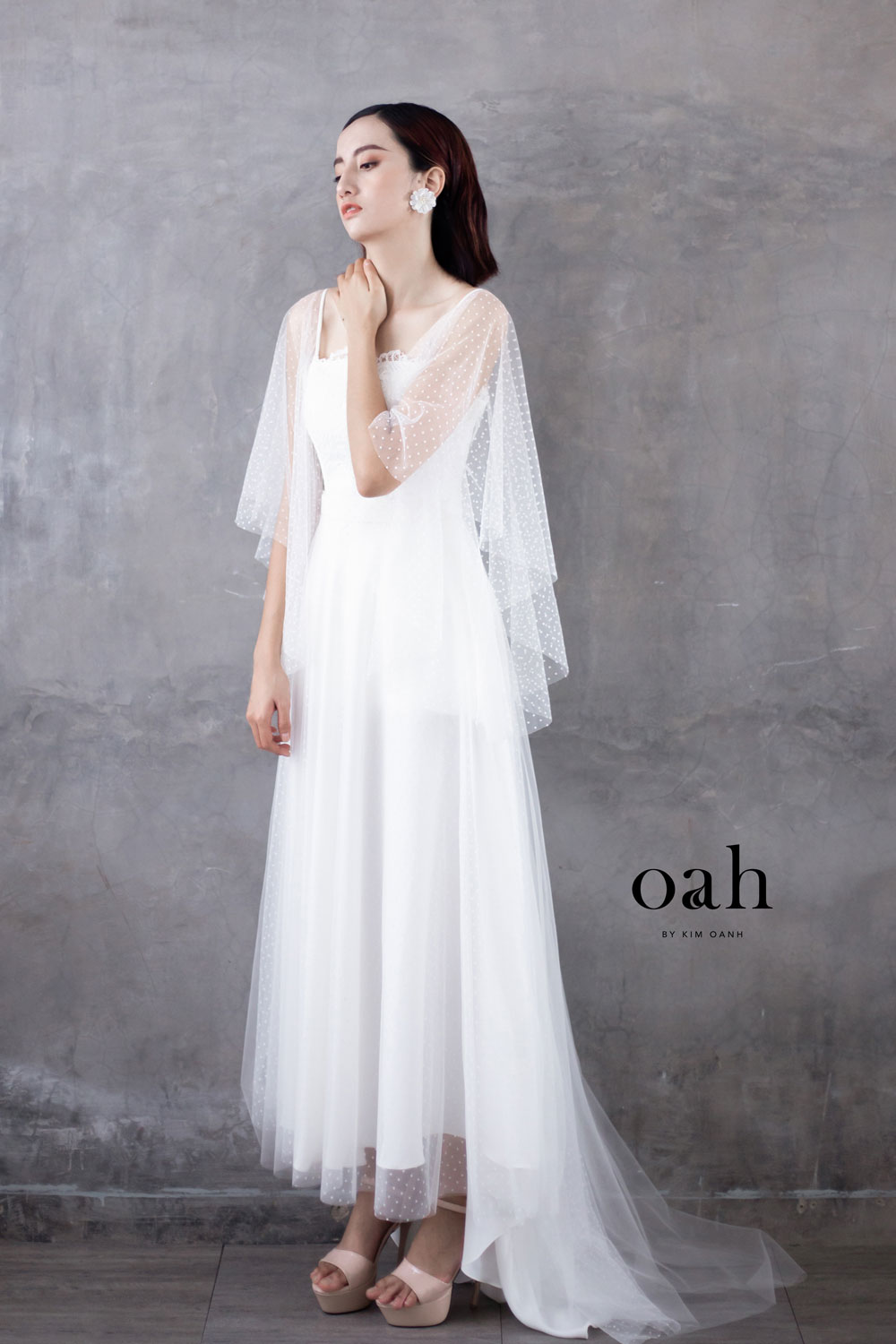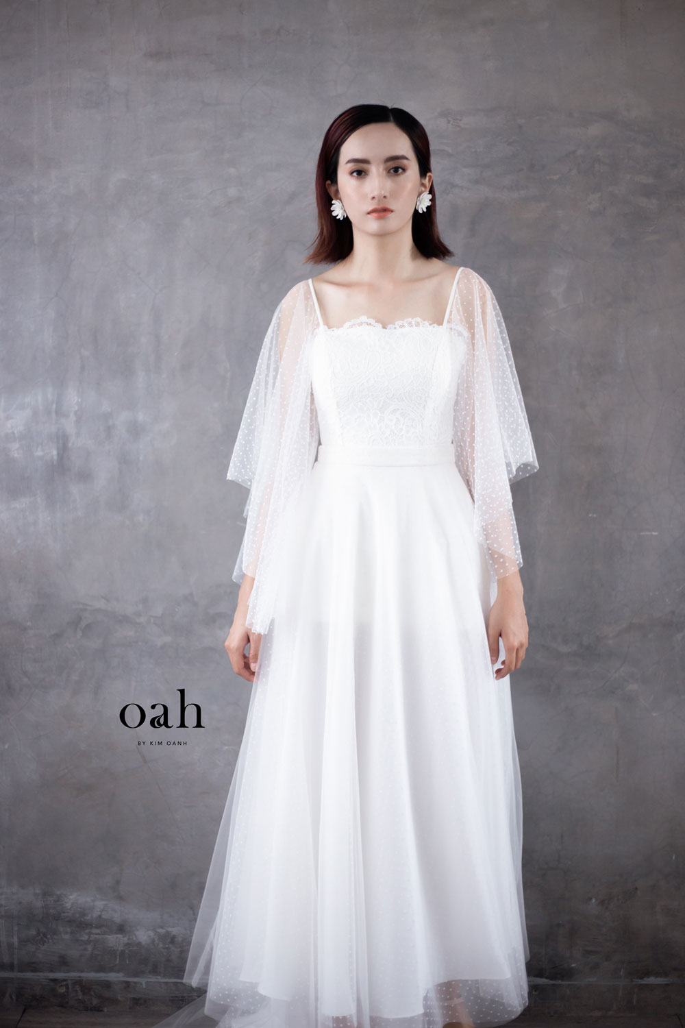 [OanhDesign] Váy cưới đơn giản Fantasia – OAH040 do Oanh Design thiết kế và hoàn thiện. Chiếc váy cưới trắng đơn giản được thiết kế với tay cánh tiên cách điệu. Phần thân áo ôm gọn tạo dáng và chân váy đặc biệt có thể mặc theo 2 dạng váy ngắn hoặc dài. Trong chiếc váy cưới Fantasia này, các nàng dâu sẽ không khác gì những cô tiên bước ra từ truyện thần thoại, thanh thoát, nhẹ nhàng và vô cùng thu hút ánh nhìn.