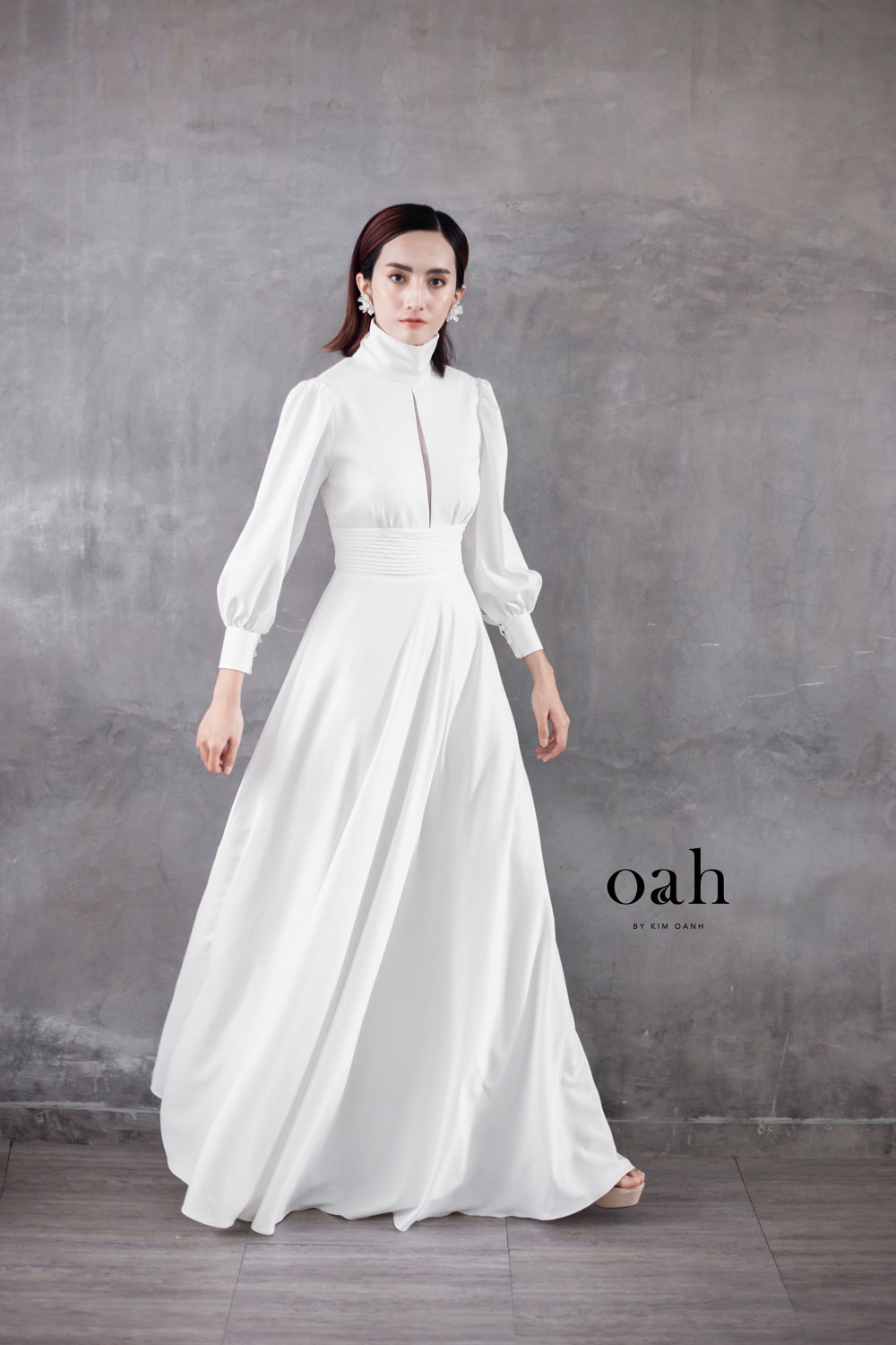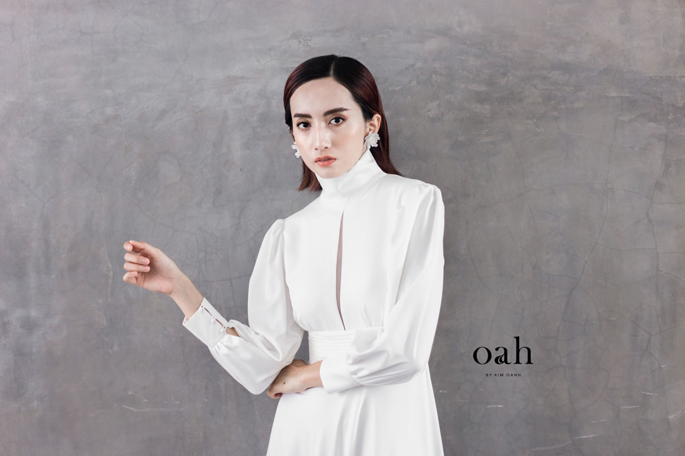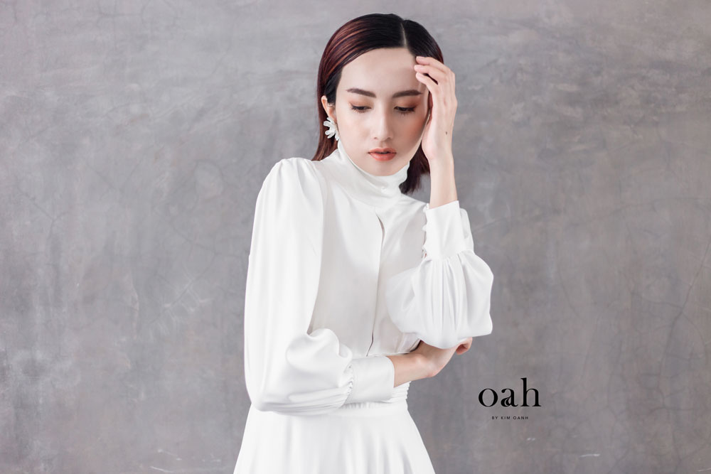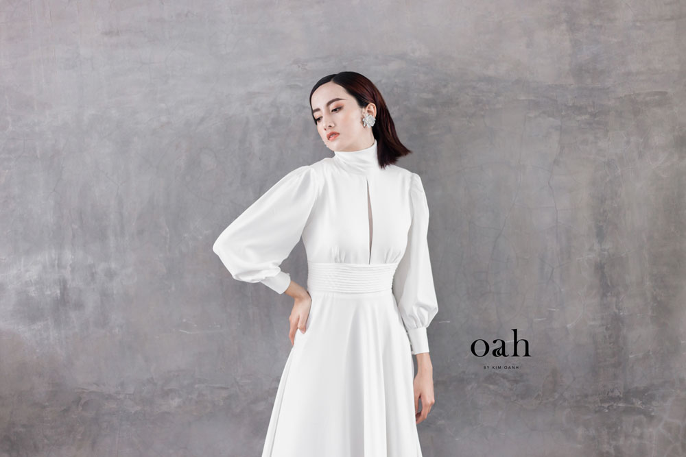 [Oanh Design] Váy cưới minimalist cổ điển – Fiona do Oanh Design thiết kế và hoàn thiện. Với phong cách áo cưới giản đơn minimalist đang làm mưa làm gió, Fiona mang thiết kế cổ điển – vừa kín đáo vừa có điểm nhấn, vừa dịu dàng lại thanh lịch. Chiếc váy cưới được may bằng vải satin – loại vải được các nàng dâu Tây vô cùng ưa chuộng vì sang trọng và nhẹ nhàng.