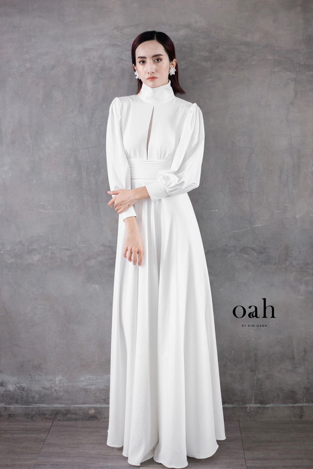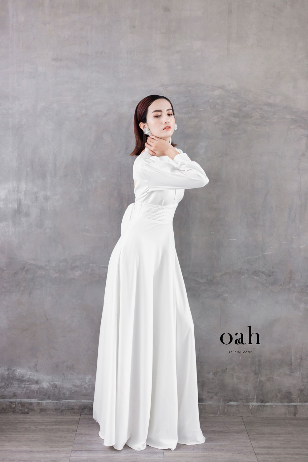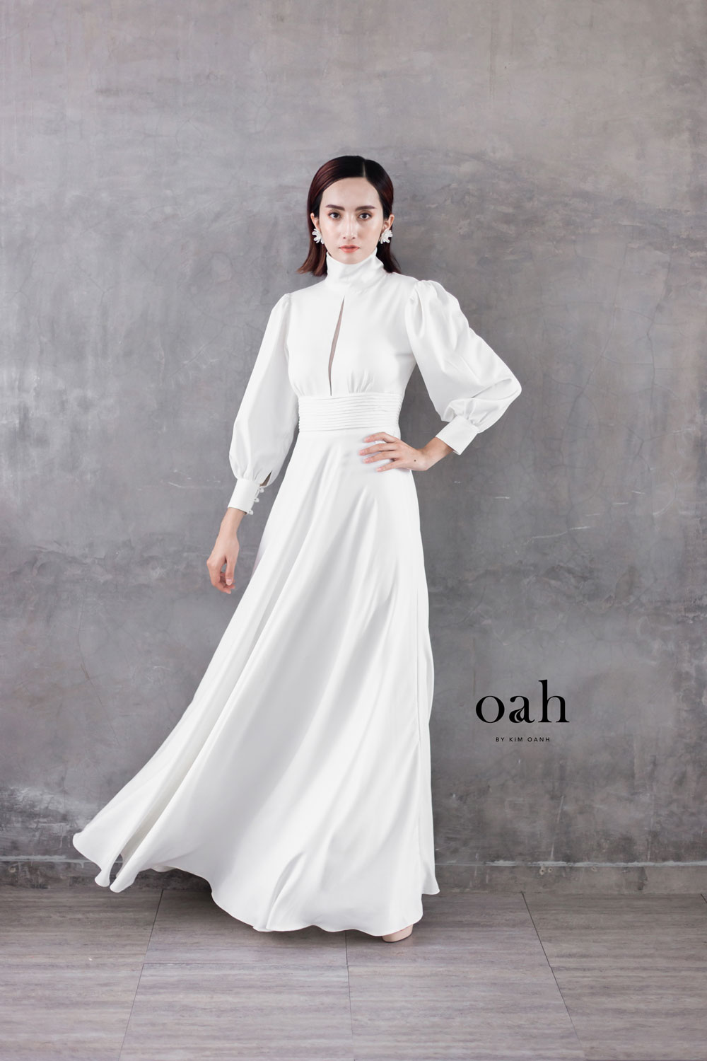 [Oanh Design] Váy cưới minimalist cổ điển – Fiona do Oanh Design thiết kế và hoàn thiện. Với phong cách áo cưới giản đơn minimalist đang làm mưa làm gió, Fiona mang thiết kế cổ điển – vừa kín đáo vừa có điểm nhấn, vừa dịu dàng lại thanh lịch. Chiếc váy cưới được may bằng vải satin – loại vải được các nàng dâu Tây vô cùng ưa chuộng vì sang trọng và nhẹ nhàng.