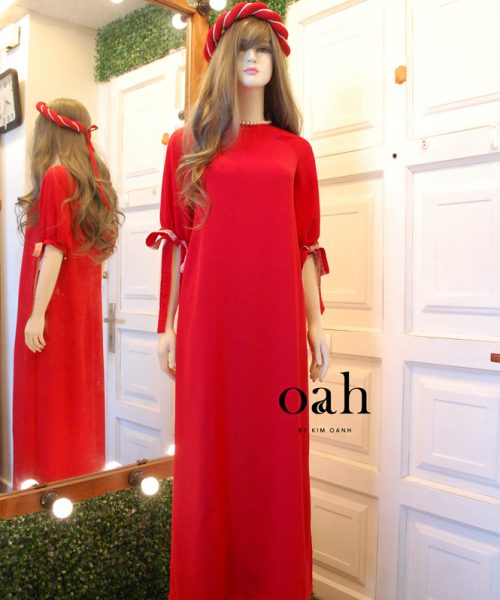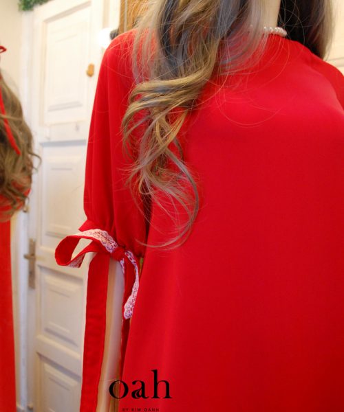 [Oanh Design] Áo dài cô dâu đỏ form suông – ADC010 do NTK Kim Oanh sáng tạo. Với form áo dài suông thoải mái, hiện đại, màu đỏ tươi tắn, kết ngọc trai ở cổ và tay áo lửng phối nơ làm điểm nhấn, chiếc áo dài cưới này rất thích hợp với những cô dâu yêu thích sự phóng khoáng.
