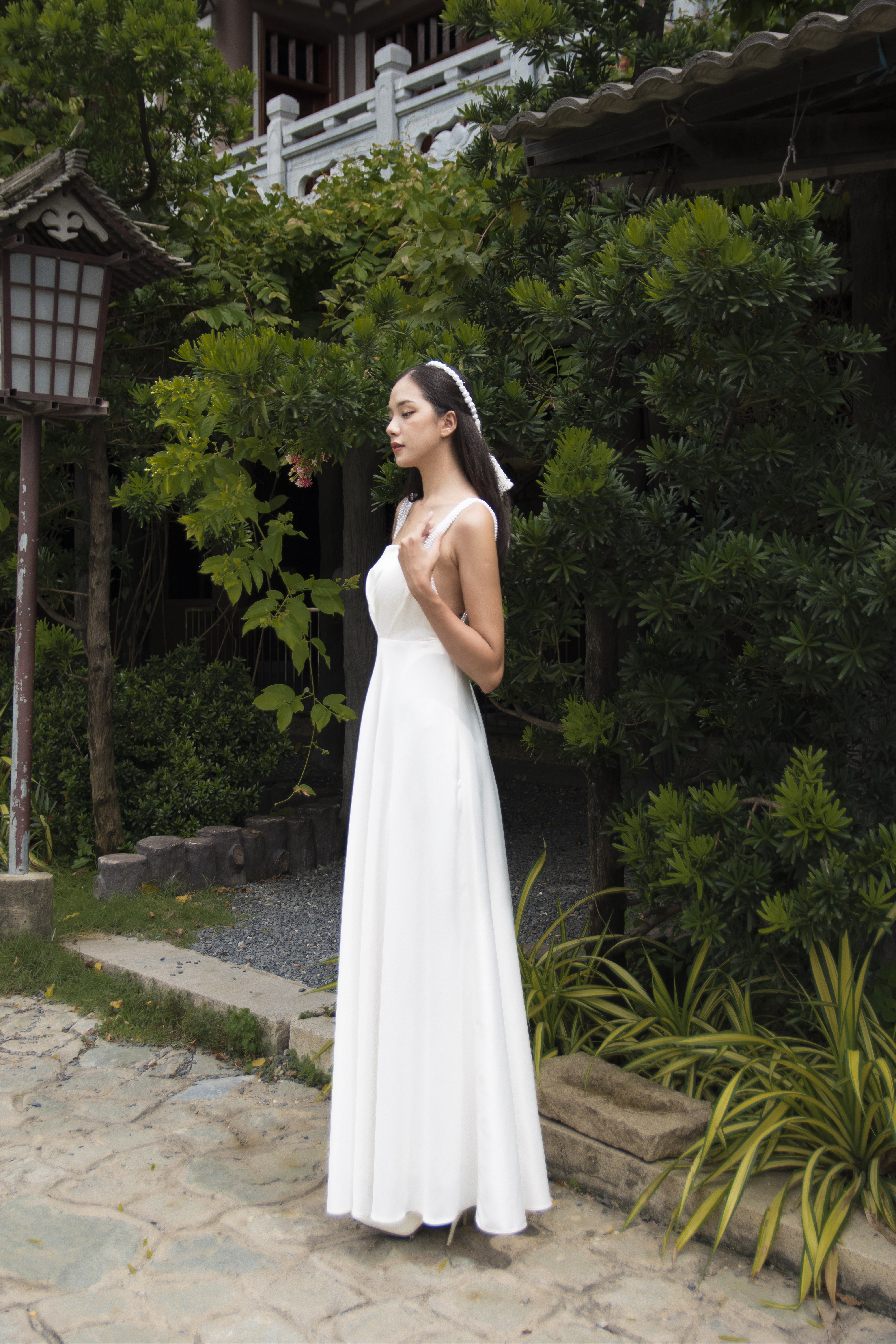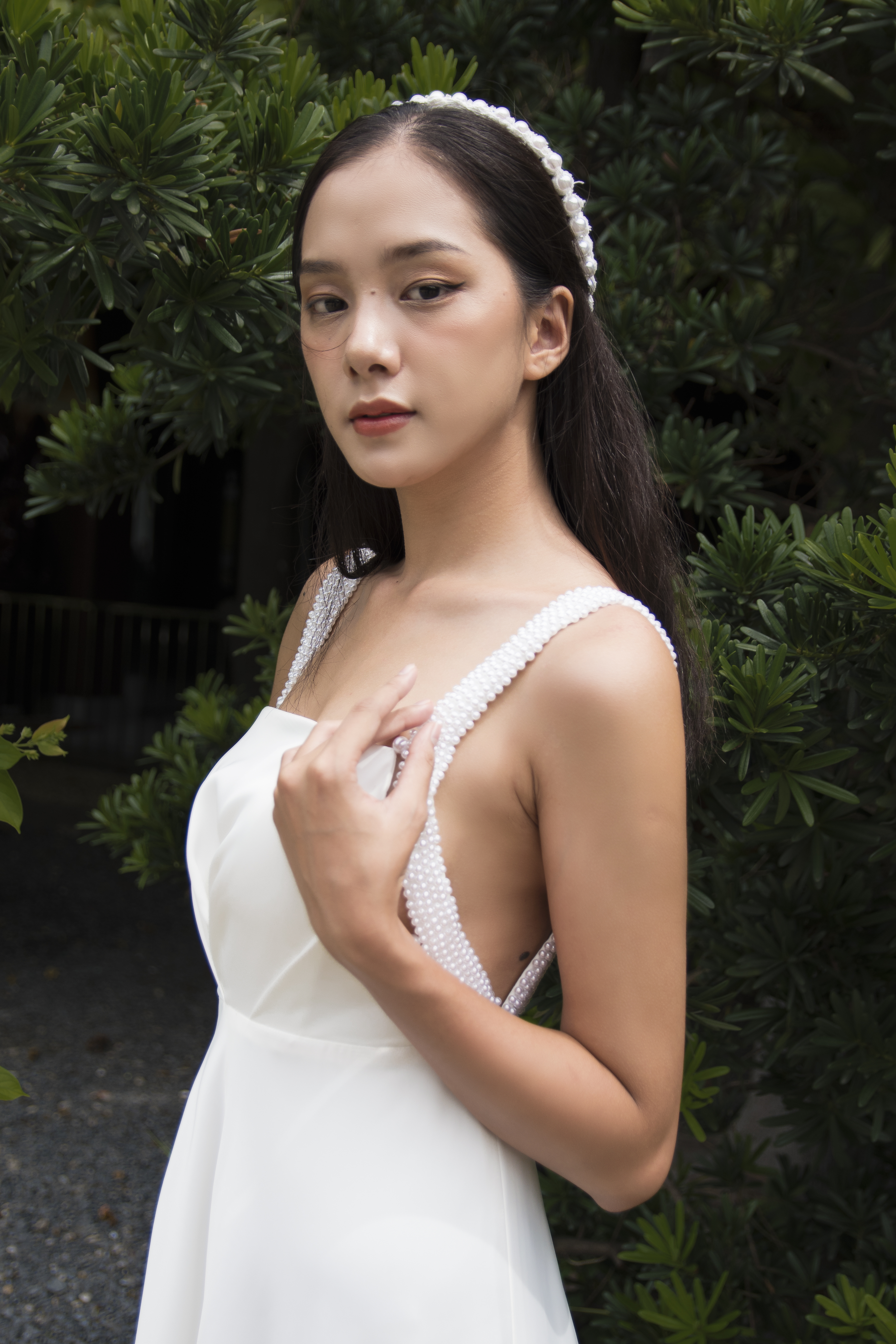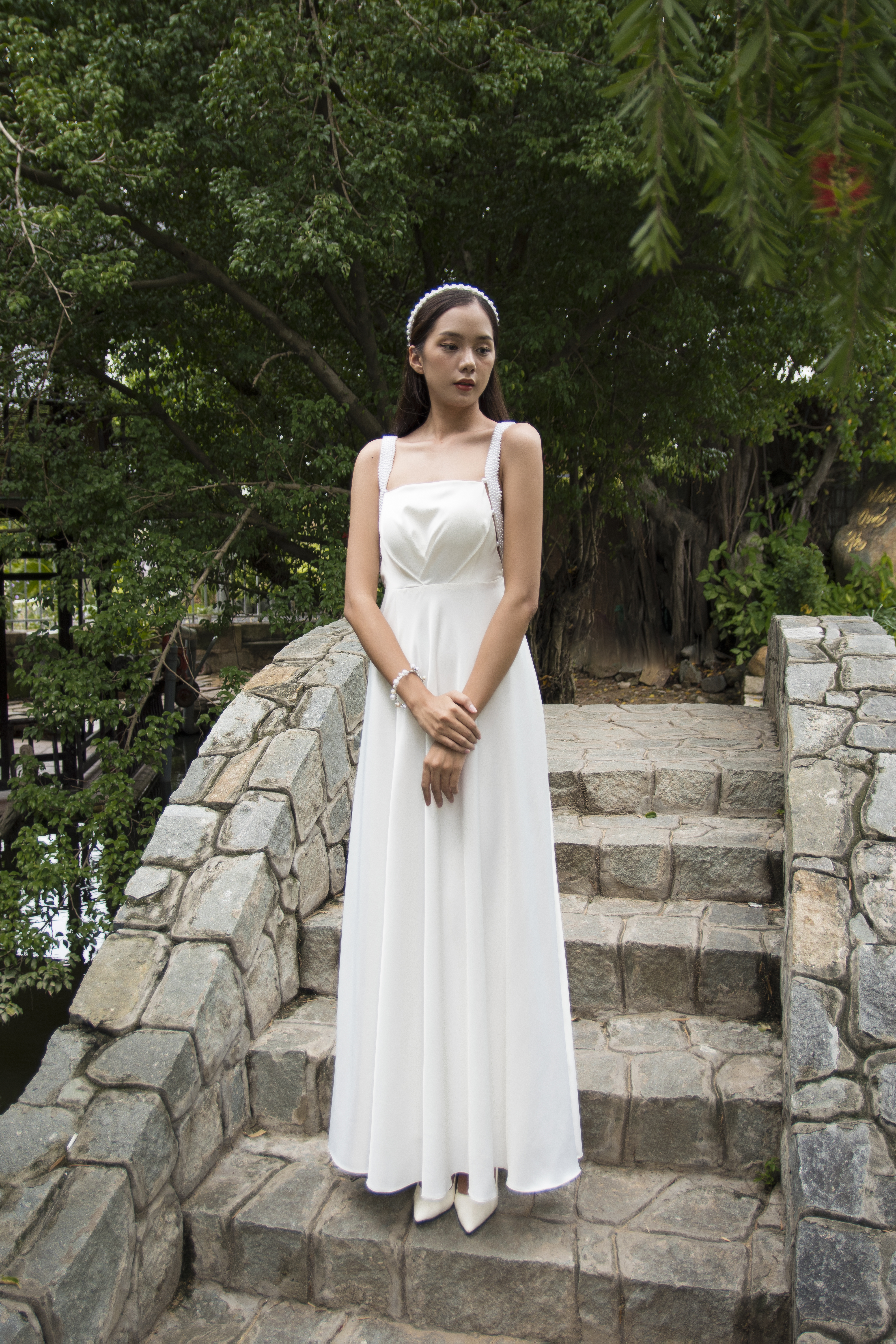 Mẫu váy cưới thiết kế Pearly Dress từ Oah được làm từ chất liệu lụa cao cấp, đính hạt trai thủ công phủ hai dây làm điểm nhấn. Váy nhẹ nhàng, đơn giản nhưng vẫn khác biệt. Sẽ thật lãng mạn nếu nàng mặc nó trên bữa tiệc bãi biển hoặc ngoài trời.