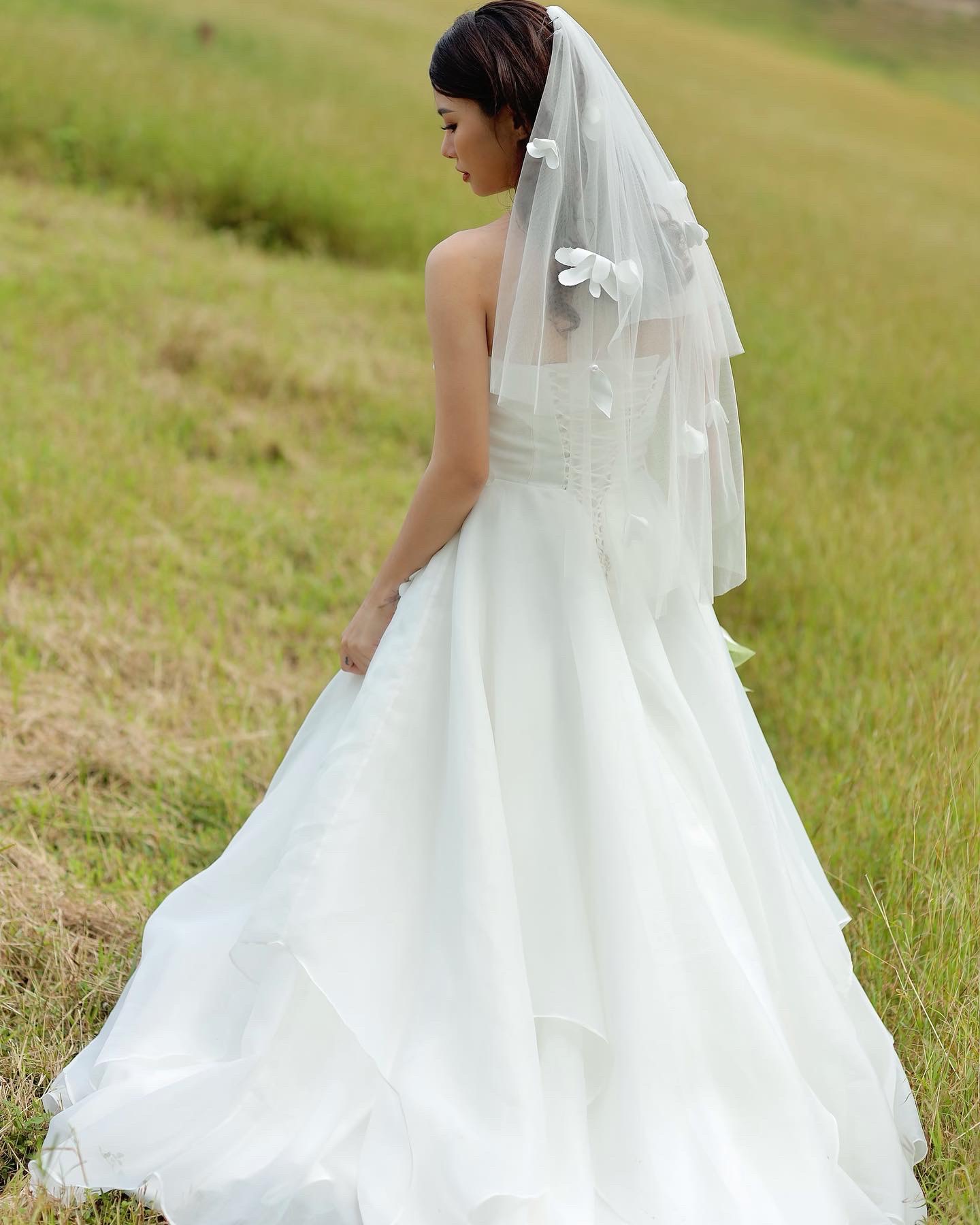 | Đặc điểm | – Tùng váy lớn – Đính hoa 3D – Thân áo cúp ngực, xếp ly kiểu |