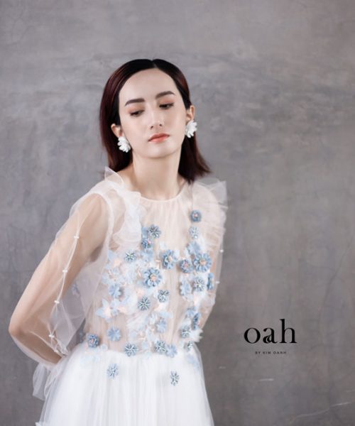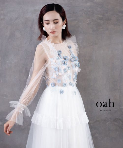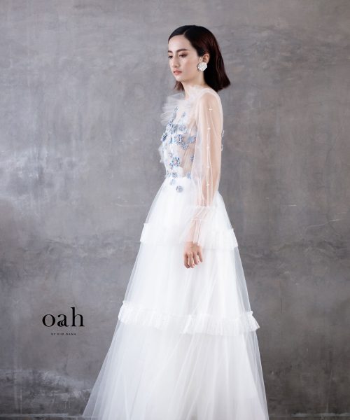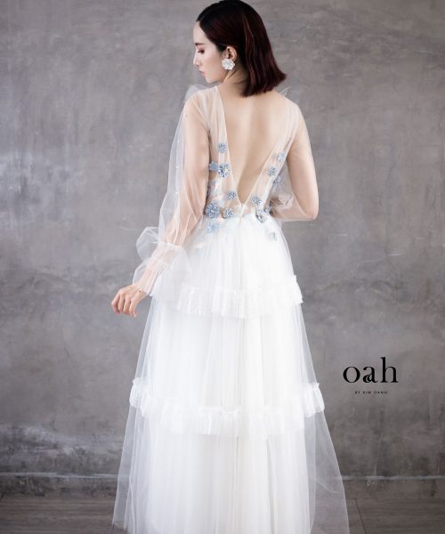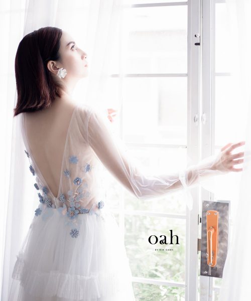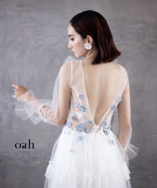 [OanhDesign] Váy cưới công chúa Lưu Ly – OAH039 do Oanh Design thực hiện theo mẫu yêu cầu của khách hàng. Chiếc áo cưới mang phong cách công chúa này có những thiết kế vô cùng nữ tính, với phần hoa tone xanh lam làm điểm nhấn, chân váy phân tầng phồng nhẹ nhàng, tay áo phồng đặc biệt và phần xẻ lưng tinh tế. Chiếc váy cưới công chúa này thích hợp với cả những cô nàng tròn trịa lẫn mảnh mai, che đi những khuyết điểm vốn có bằng sự duyên dáng đáng yêu của từng chi tiết váy.