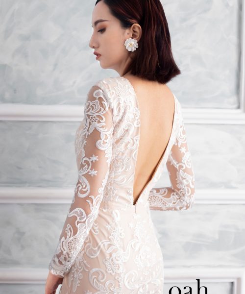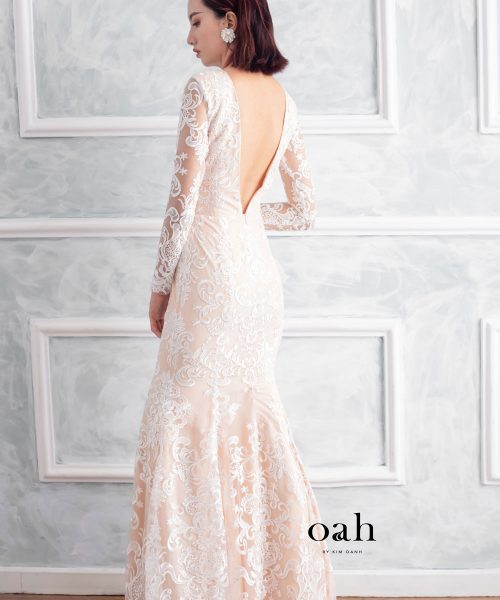 – Lưng xẻ sâu – Chân váy đuôi cá – Tay áo dài ôm – Form váy ôm body |