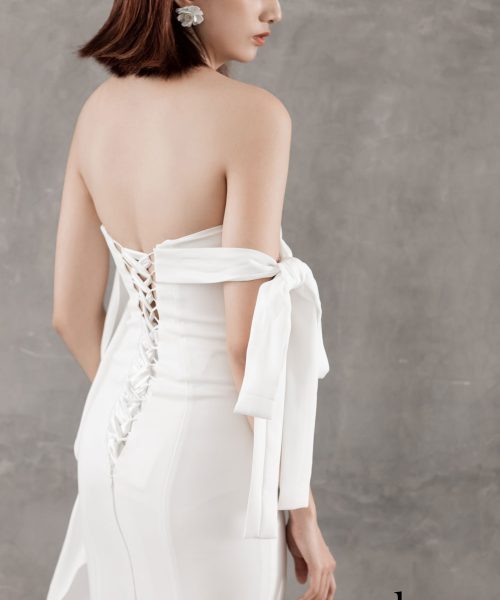 [OanhDesign] Váy cưới đuôi cá tối giản – Gloria OAH032 do Oanh Design thiết kế và hoàn thiện. Chiếc áo cưới đuôi cá giúp bạn khéo léo khoe trọn những đường cong quyến rũ của cơ thể. Chiếc váy cưới minimalist – váy cưới tối giản bỏ qua tất cả những chi tiết rườm rà, tập trung vào việc tôn dáng cho cô dâu. Điểm nhấn của chiếc váy chính là tay cột rớt vai, phần lưng dùng thiết kế dây đan và tà áo vây cá phối nhẹ nhàng.