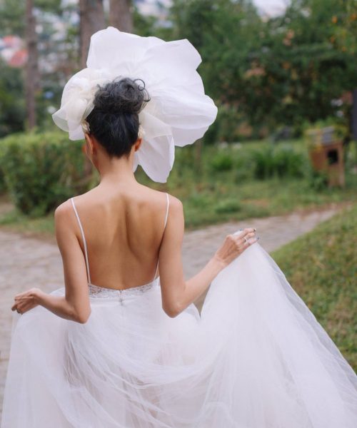 [Oanh Design] Váy cưới quyến rũ – Dancing Queen do chính tay NTK Kim Oanh tạo ra. Với thiết kế váy cưới đơn giản, để trần phần lưng và sẻ xâu phần ngực kết hợp với chân váy phồng nhẹ thướt tha, thiết kế này đơn giản nhưng lại toát ra được sự quyến rũ, gợi cảm cho cô dâu.