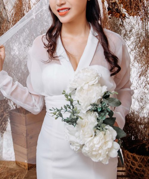 Ý tưởng Áo cưới cổ vest, theo hơi hướng Âu phục, trang nhã, nền nã là một ý tưởng khá lạ trên thị trường váy cưới Việt. Nhưng trong nghệ thuật thì làm gì có giới hạn hay quy phạm nhất định chứ? Thế là chiếc váy cưới thanh lịch LISA này ra đời để minh chứng điều đó.