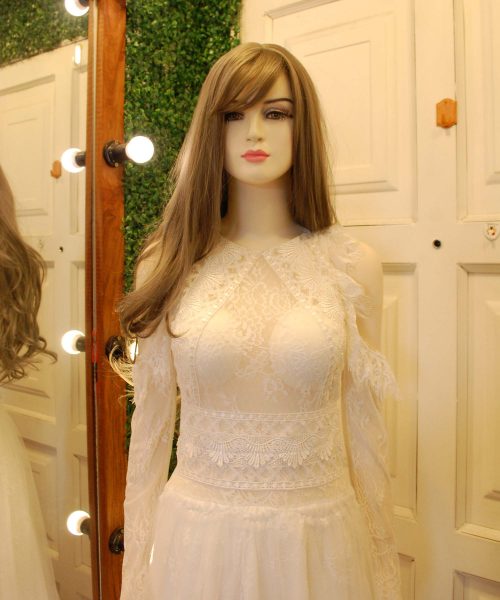 | Đặc điểm | – Tay dài, vai rớt – Eo phối ren – Chân váy xuông |