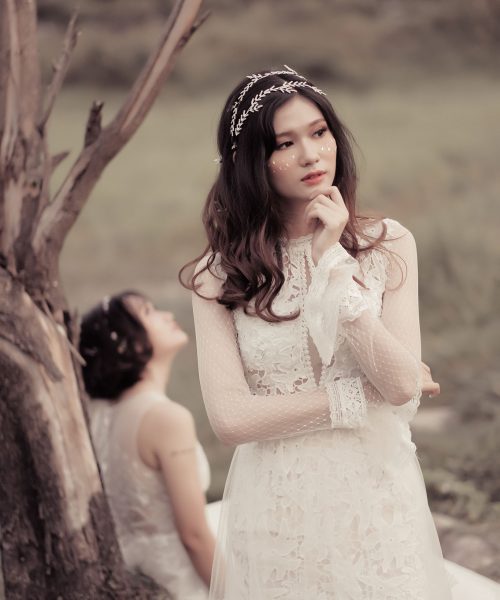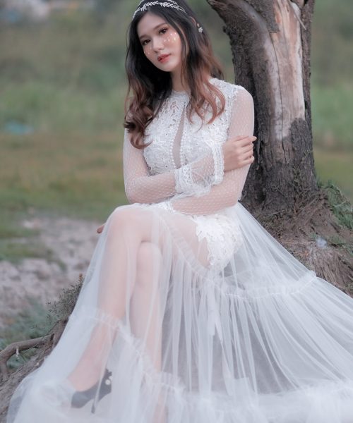 [Oanh Design] Váy cưới tiểu thư – Elizabeth 02 do chính tay NTK Kim Oanh sáng tạo. Mẫu áo cưới đơn giản Elizabeth 02 giữ lại lối cách điệu theo phong cách tiểu thư pháp, với các phần ren ốp tinh tế ở tay và ngực. Lớp váy trong ôm body, lớp váy tầng bên ngoài xuyên thấu, nhẹ nhàng. Cùng với nét thanh lịch ở mẫu áo cưới phong cách tiểu thư Elizabeth đầu tiên, mẫu 02 lại đi kèm nét quyến rũ, bí ẩn.