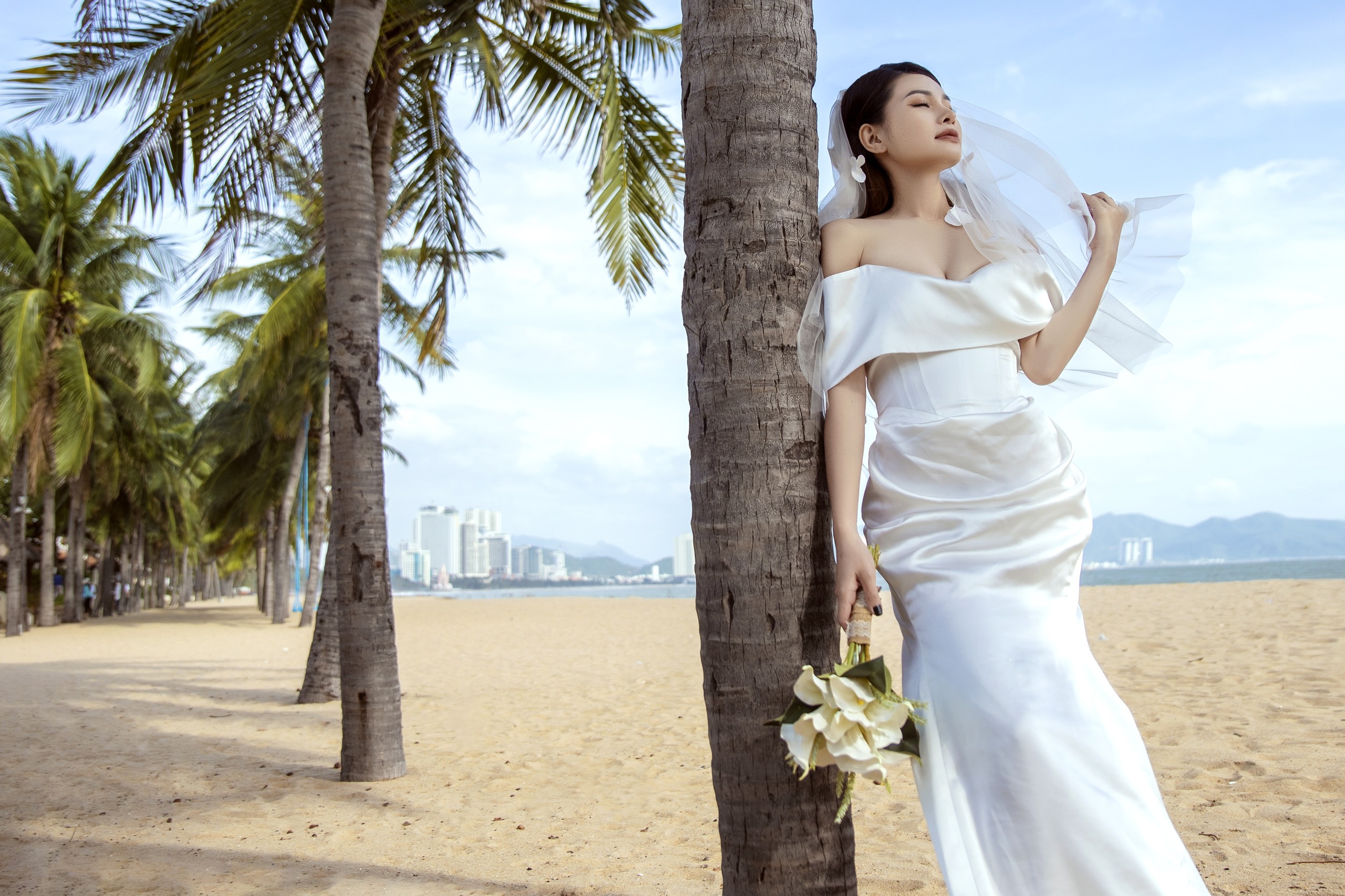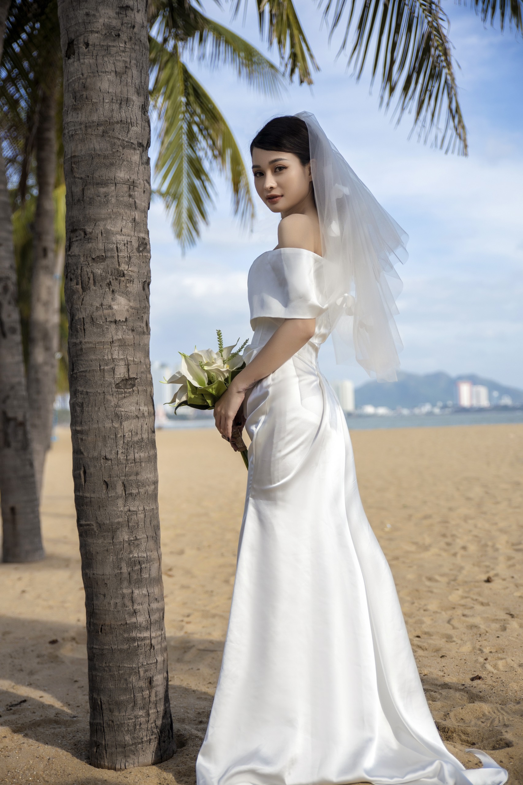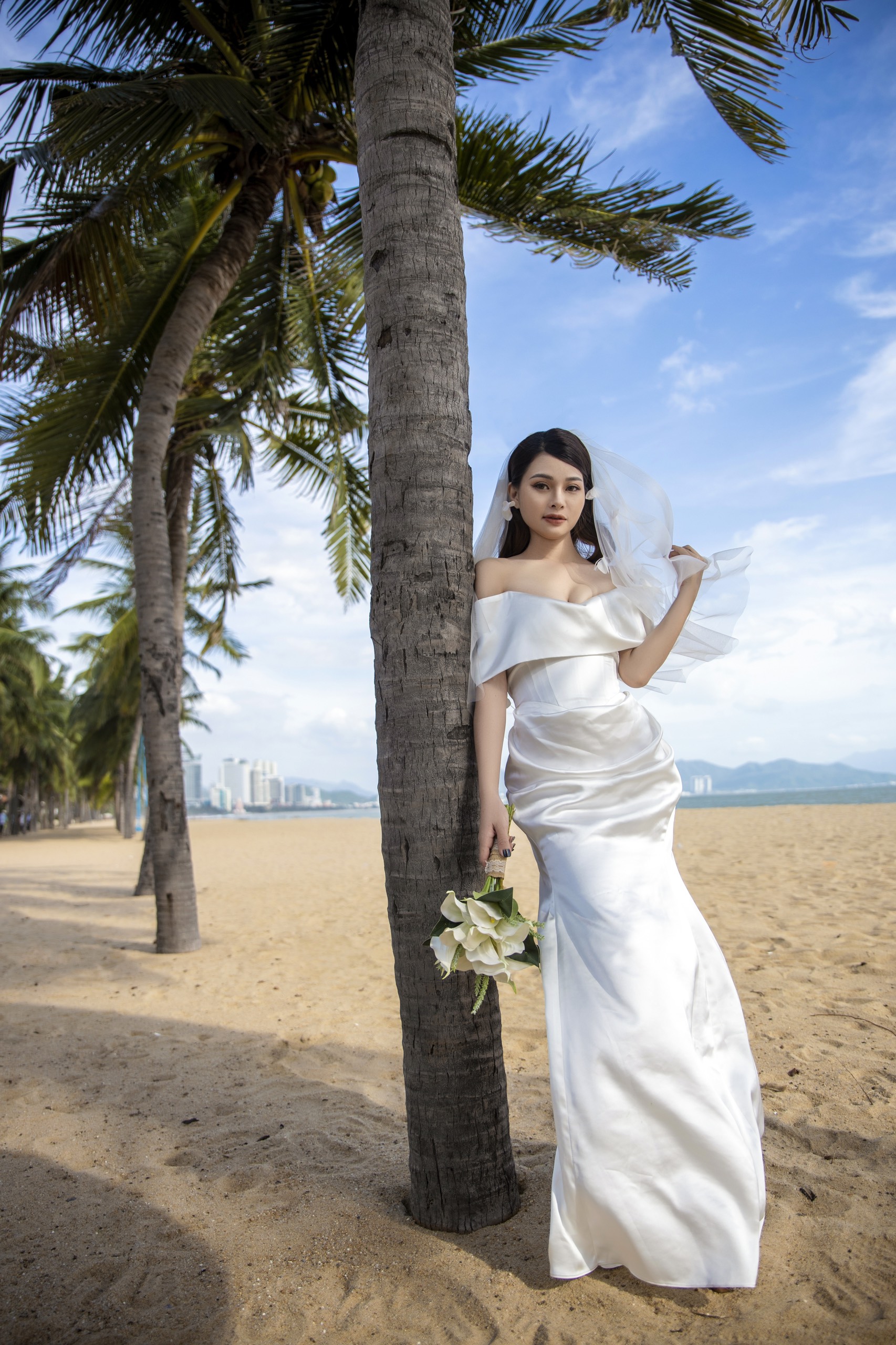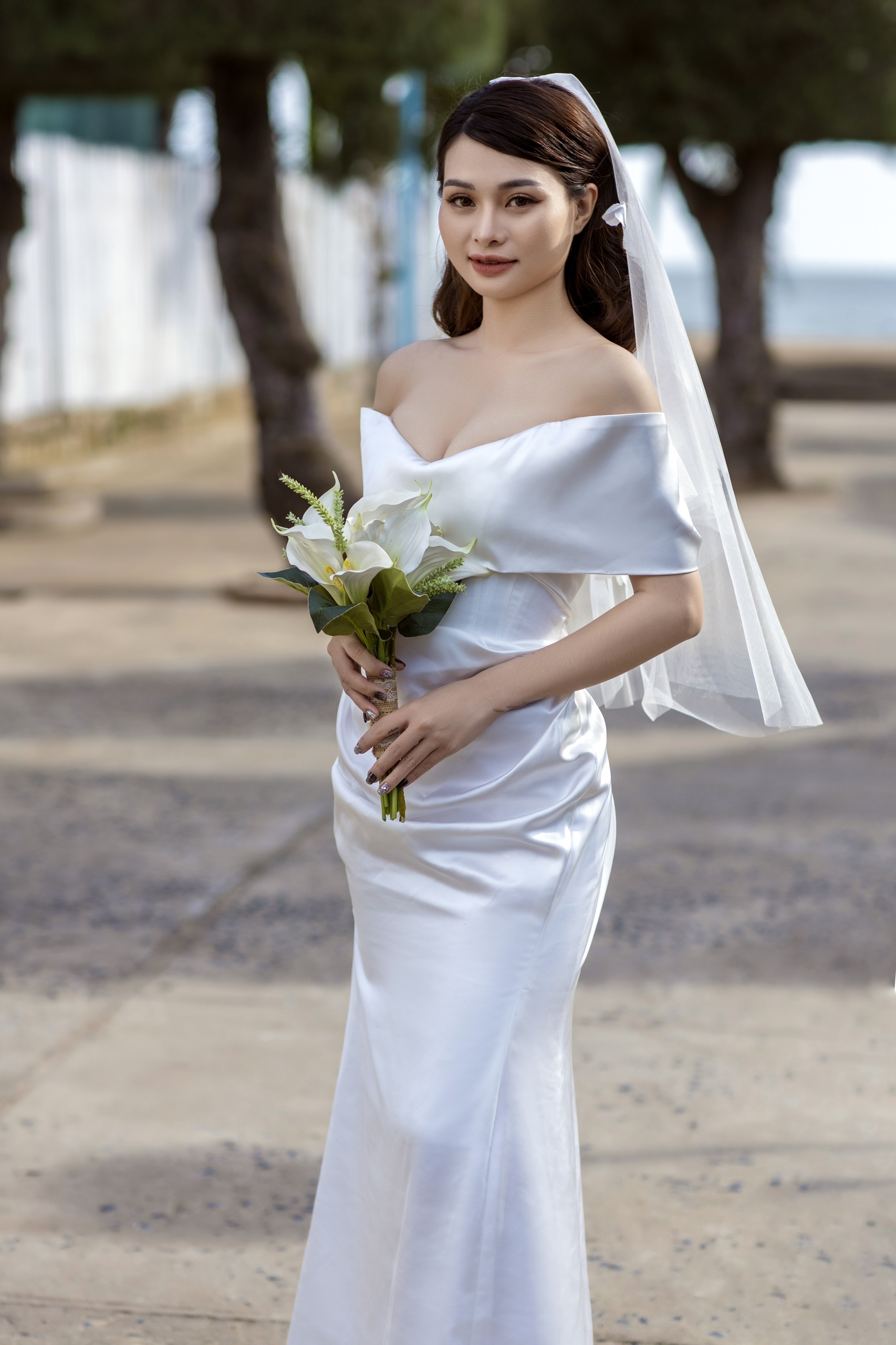| Đặc điểm | – Thiết kế bẹt vai, đổ nhẹ– Tùng váy dáng đuôi cá ly đổ |