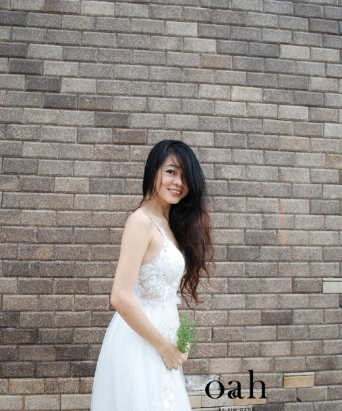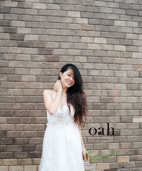 [Oanh Design] Váy cưới trắng đơn giản – Jasmine do Oanh Design thiết kế. Ngực áo xẻ xâu phối 2 dây mảnh, lưng trần, phần chân váy phồng nhẹ nhàng phối ren hoa. Chiếc váy cưới đơn giản này tỏa ra mùi hương nhẹ nhàng mà thanh thoát.