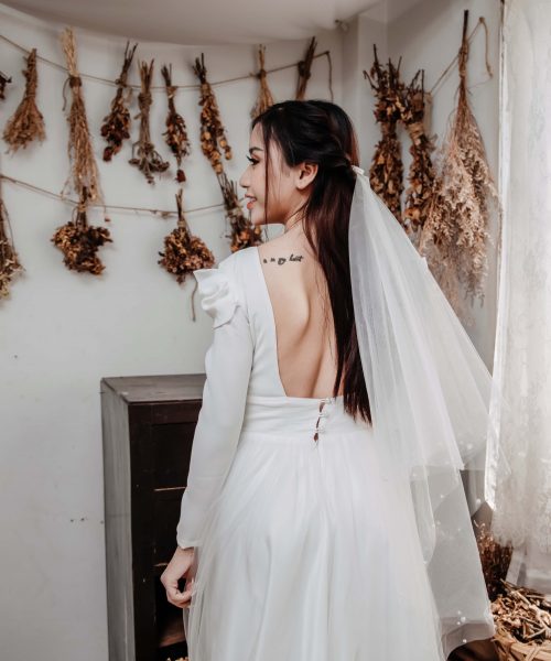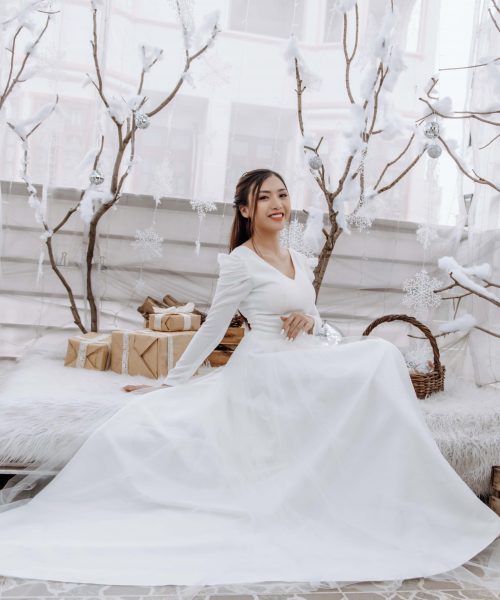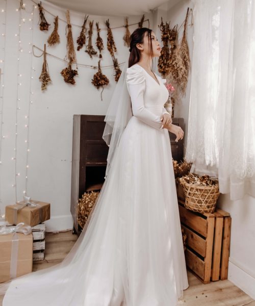 [OanhDesign] Váy cưới trắng Snow white – OAH089 do Oanh Design thiết kế và hoàn thiện. Nằm trong bộ sưu tập CỎ ĐÔNG, thiết kế này mang theo hơi thở của mùa Đông se lạnh. Snow White cũng giống như tên gọi của mình – là một bộ váy cưới gợi về nàng công chúa Bạch Tuyết xinh đẹp. Kín đáo, dịu dàng, nhưng đầy thu hút.